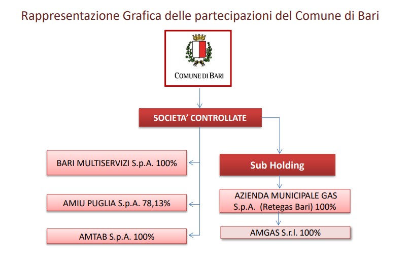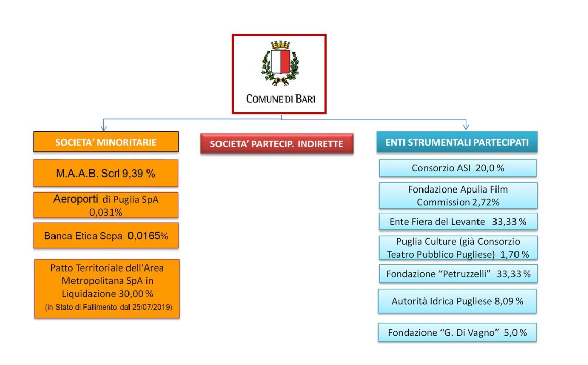 Rappresentazione grafica con indicazione delle percentuali di collegamento, diretto o indiretto, delle partecipazioni del Comune di Bari in società/consorzi/altri enti.
